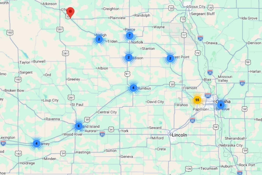 Together, these locations allow advertisers to reach both local consumers and regional travelers, creating strong brand exposure across Nebraska.
